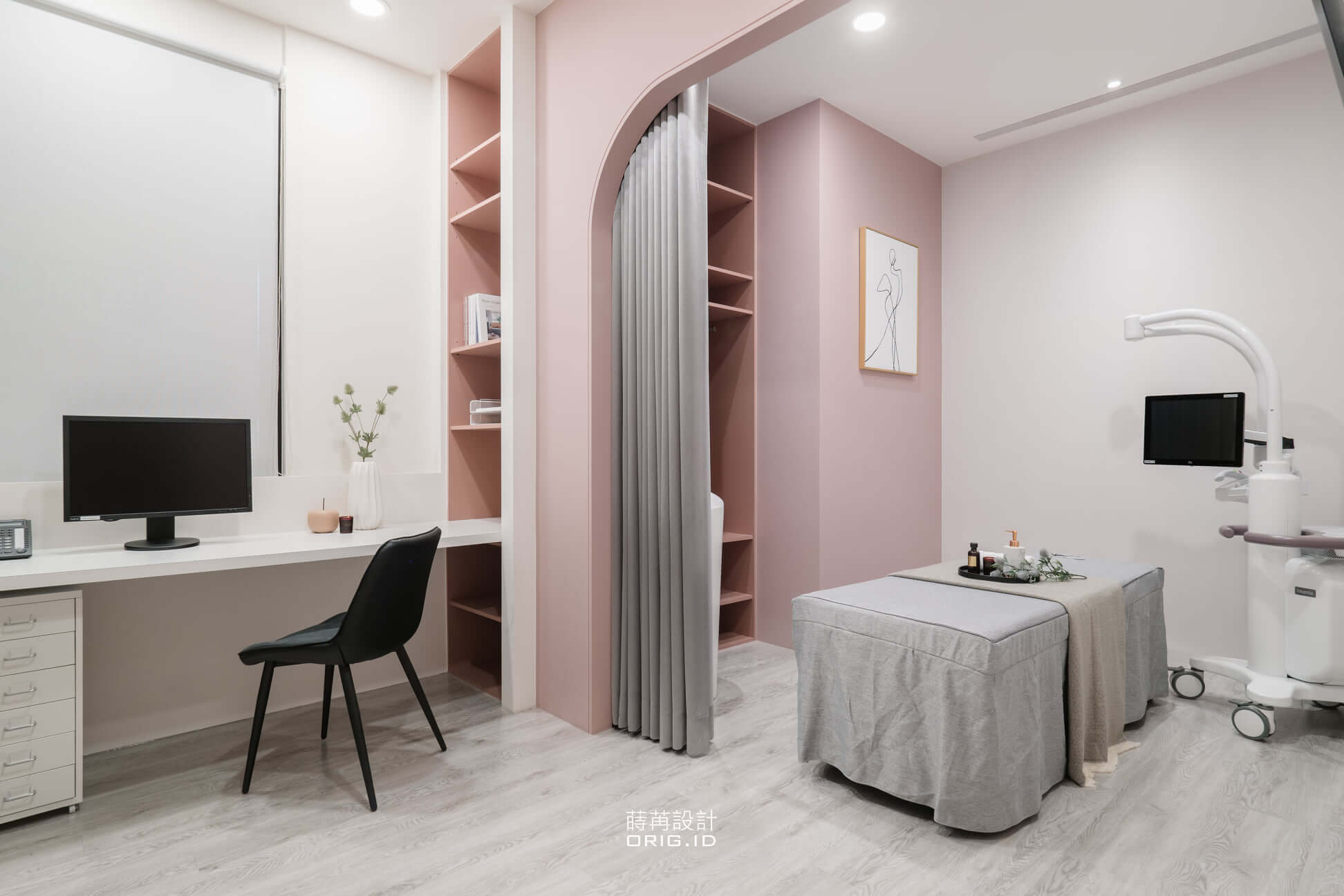 融入精品旗艦概念,搭配接近灰階的空間背景、俐落線條構成,